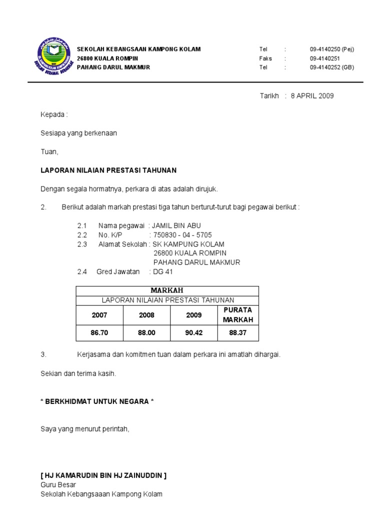Contoh Surat Penilaian Prestasi Pdf